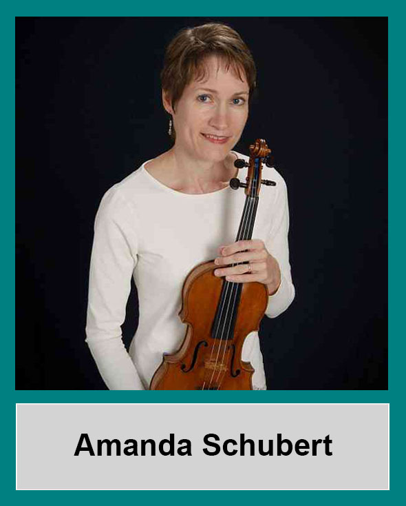 Amanda Schubert studied Suzuki violin with her father, Lacy McLarry, from age three through college, receiving a Bachelor of Music degree in violin performance from Oklahoma City University. She received a Master of Music degree in violin performance from the University of Wisconsin-Madison, where she studied with Norman Paulu, and, as a member of the graduate string quartet, was coached extensively by the Pro Arte String Quartet. Mrs. Schubert holds a Teaching Certificate from the Talent Education Research Institute in Matsumoto, Japan, where she studied with Shinichi Suzuki, and is an SAA Teacher Trainer. Mrs. Schubert was a member of the Honolulu Symphony Orchestra for eighteen seasons and served on the violin faculty of the Brevard Music Festival in North Carolina from 1996 to 2011. Currently, she is principal second violin of the Temple Symphony Orchestra, violist of the Temple Symphony String Quartet, free lances extensively in the Central Texas area, and is the director of the Suzuki Academy of Waco. She and her husband are the Suzuki parents of two daughters who are aspiring violinists.